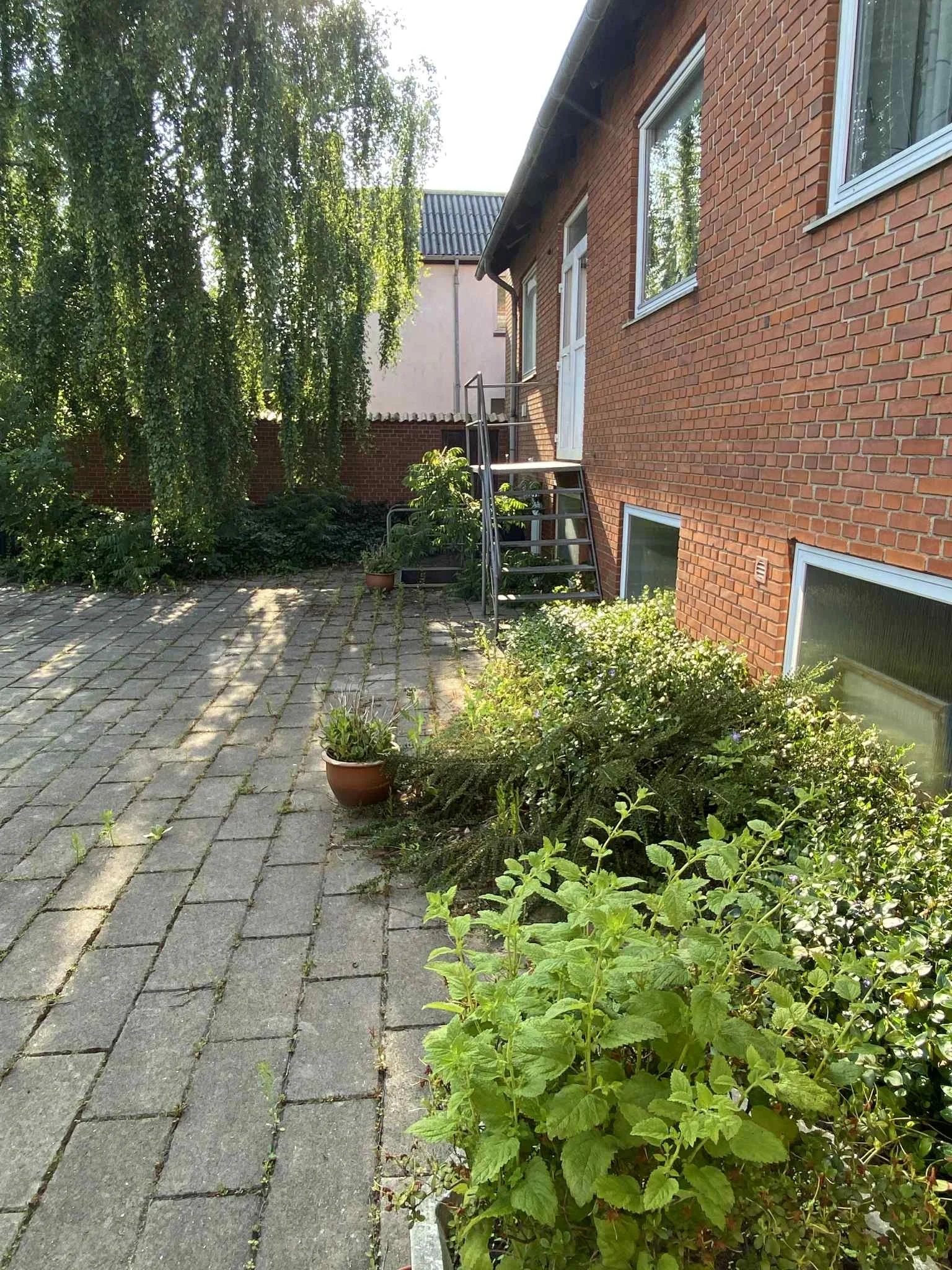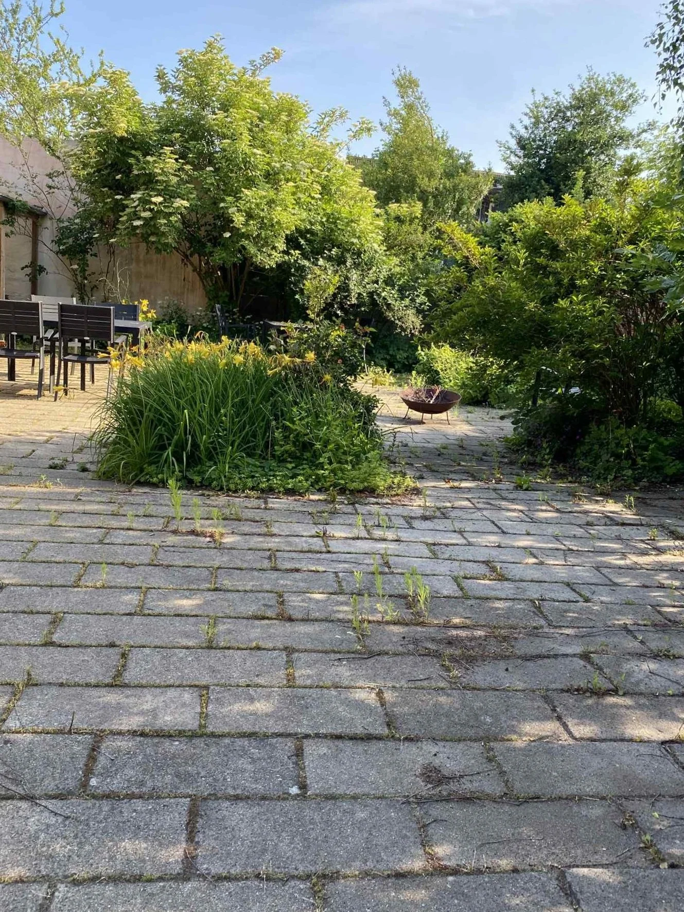 Bag det store hus gemmer en lille oase sig: vores gårdhave hvor vi nyder det grønne pusterum. En grillaften, en udekoncert, hængekøje, yoga.