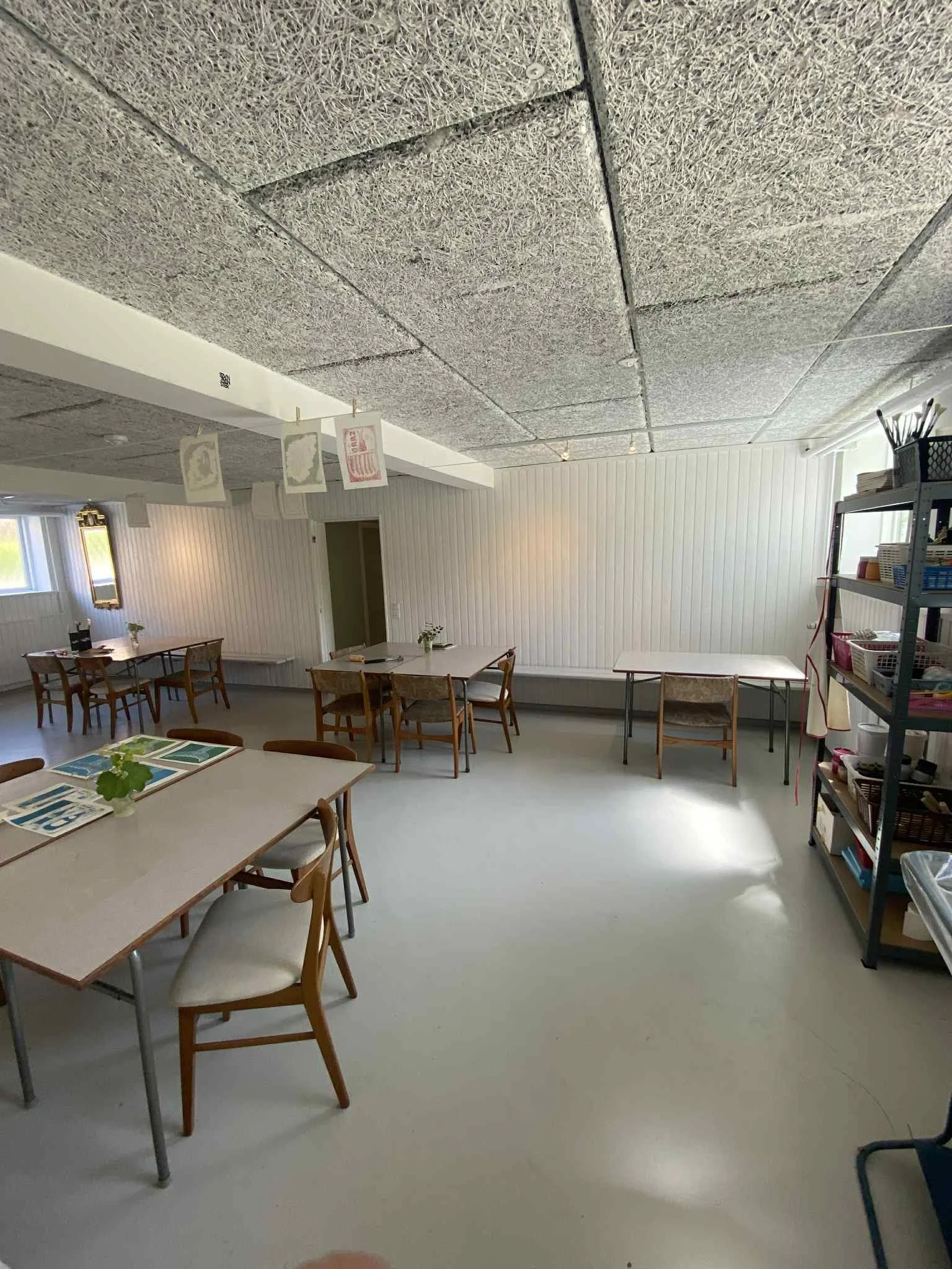 I kælderen under scenen gemmer vores kreative værksted sig. Hvad end du tegner, maler, snitter, modellerer, kan du få plads til det her. Det fungerer både som åbent værksted og kan bookes til kreative arrangementer.